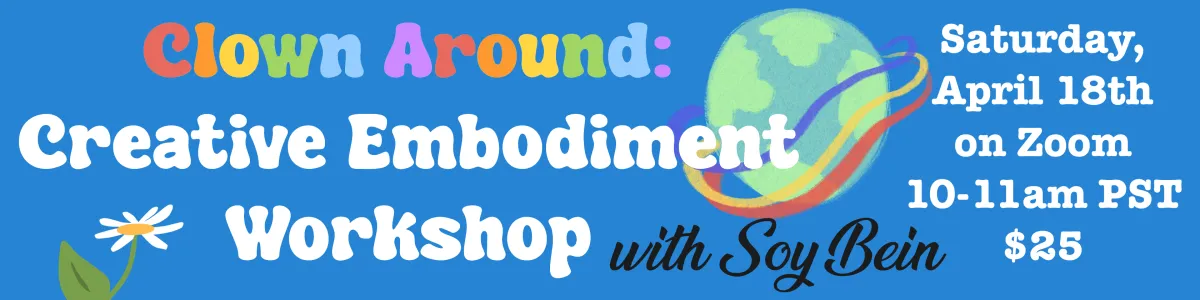One of the best ways to connect with your creativity is through play! That’s why this month we’re taking the workshop off the page and into our bodies to do some creative clowning! All that is required is some space to move and willingness to get silly as we practice some moves to get us into our bodies then free flow with what we’ve learned!
